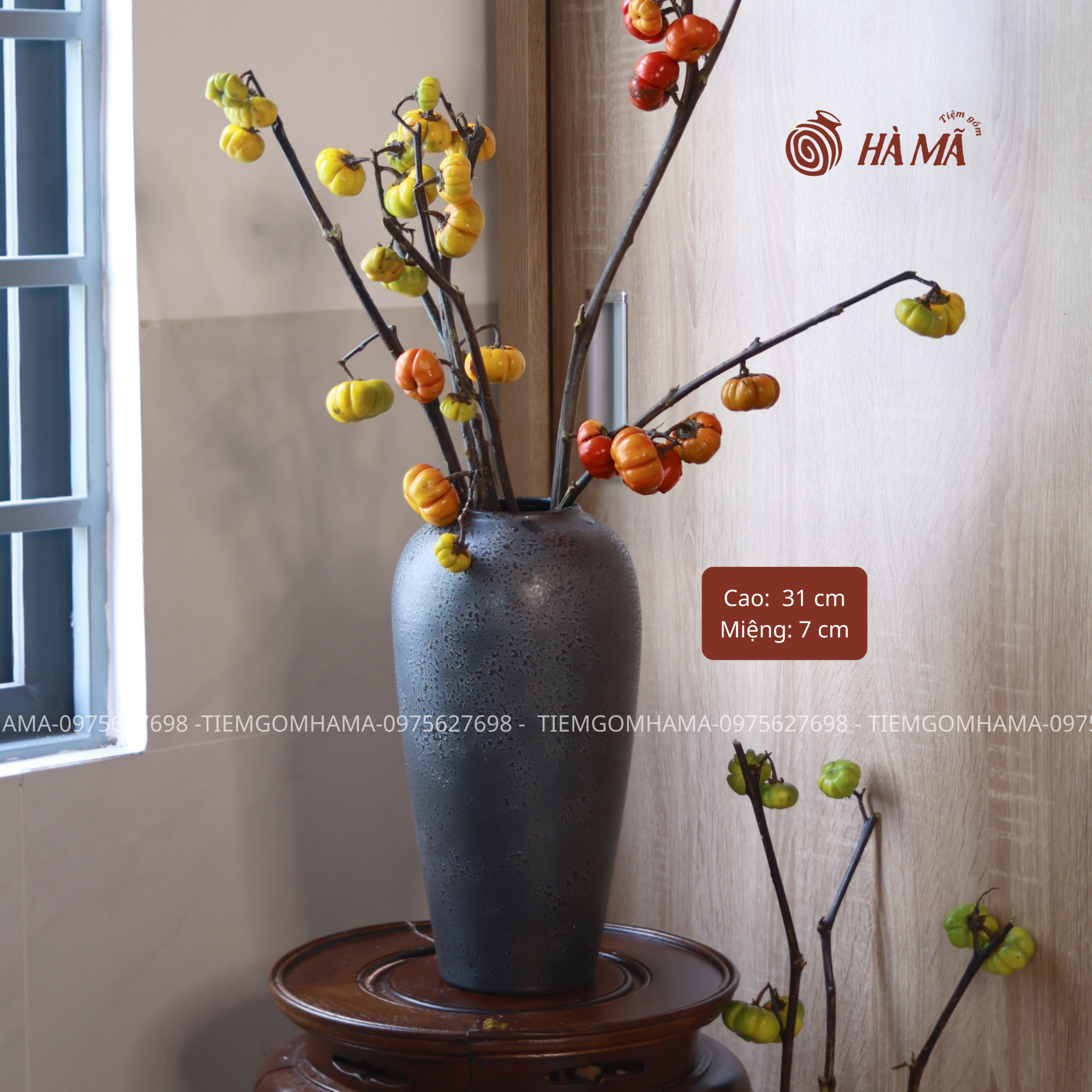 Bình gốm Boom đen 31cm :