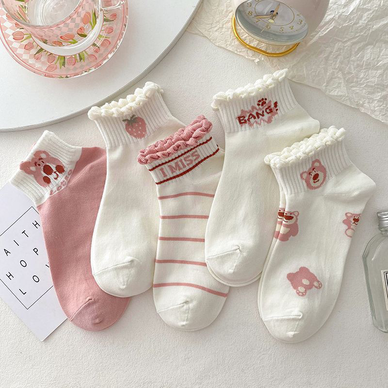Tất vớ nữ Hoạ tiết Gấu hồng cổ bèo